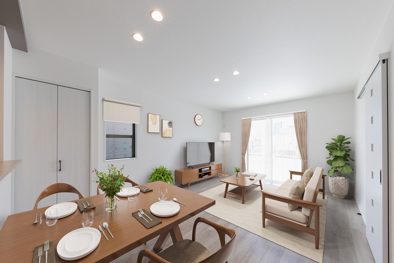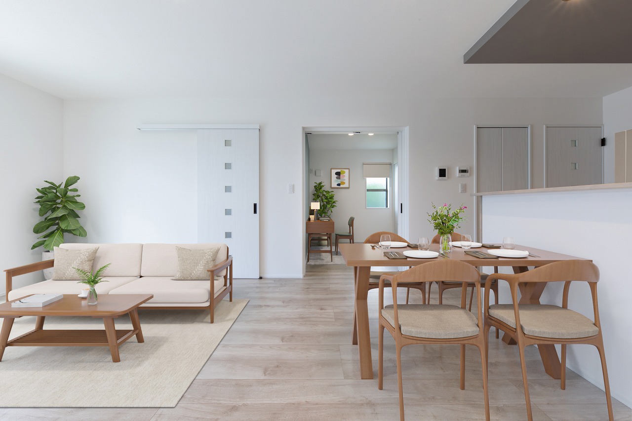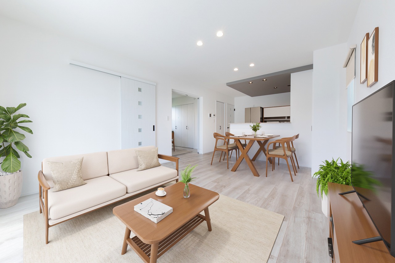 浜松市中央区小豆餅四丁目 | No.1 空間にほどよいメリハリを生む折下げ天井を採用。(家具はイメージです)