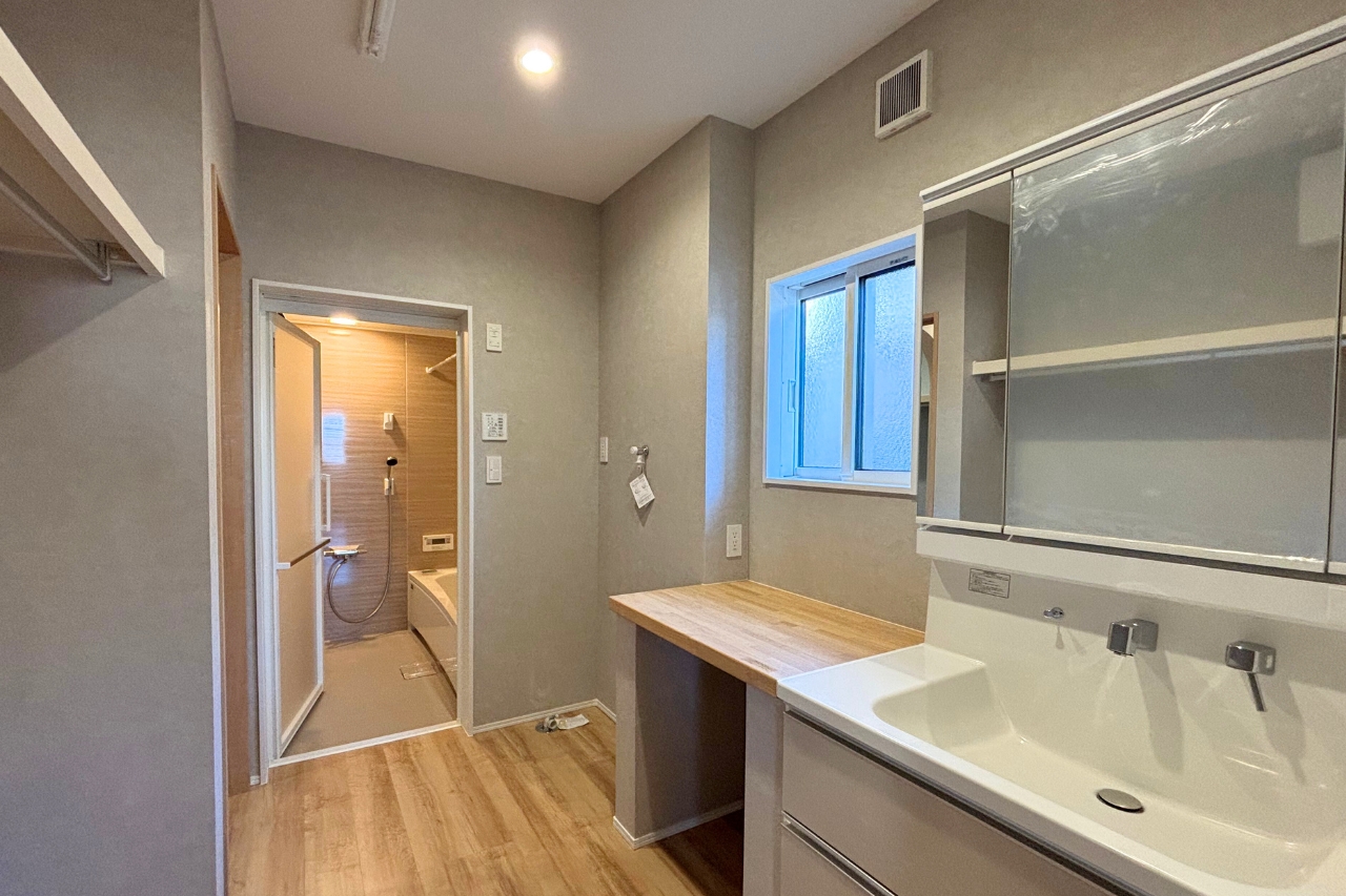 「洗う・料理・片付け」を1ヶ所に集約し、キッチンを中心に家全体が繋がる回遊動線を採用しました。 共働き世帯の忙しい毎日をサポートし、家族が自然と集まる心地よいLDKを実現しています。