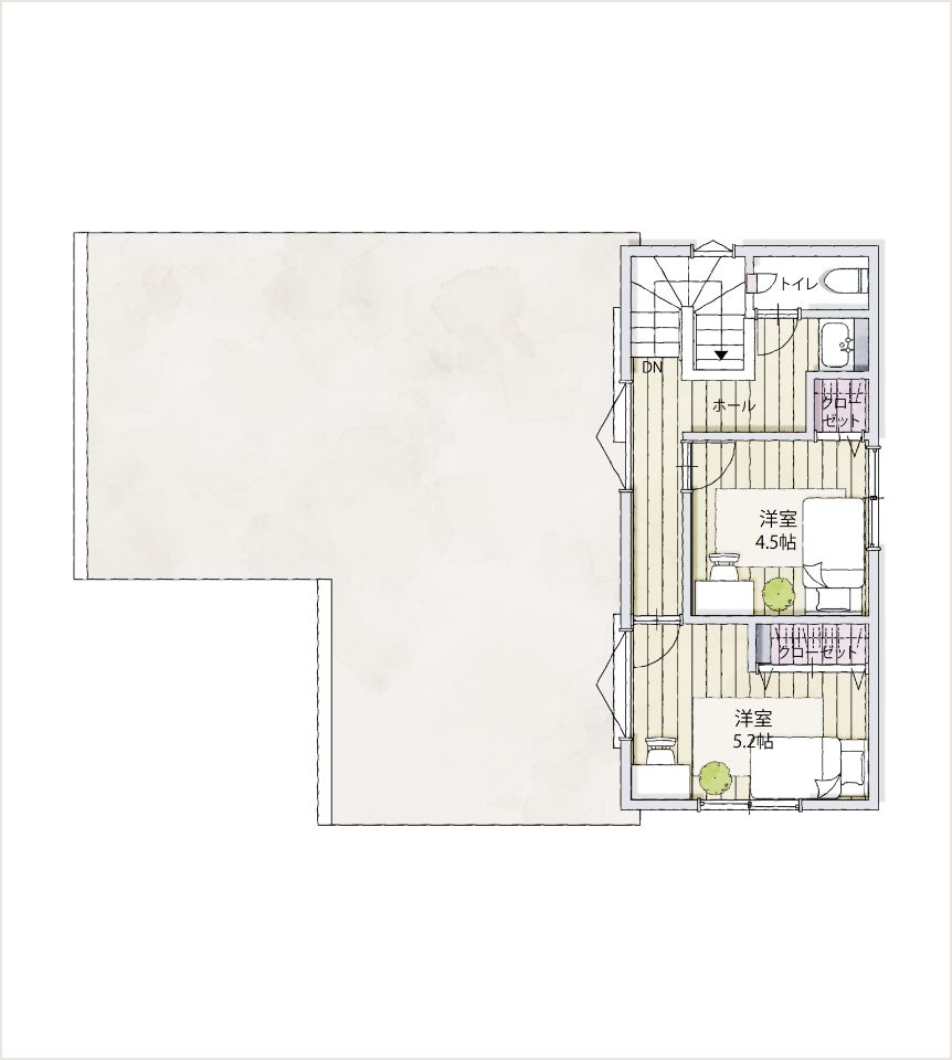 【7】2階に洋室を二部屋、1階に主寝室を配置