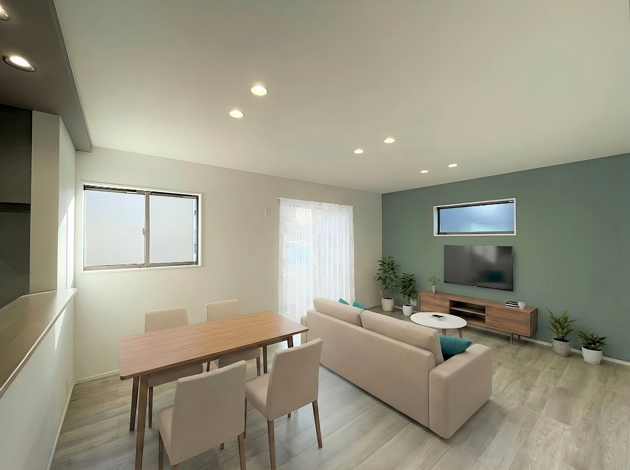広々18.8帖のリビングを設けた住まい。/遠州芝本駅自転車約6分!中瀬小学校徒歩約8分!東名IC、バイパスも近く交通便利な住環境です。